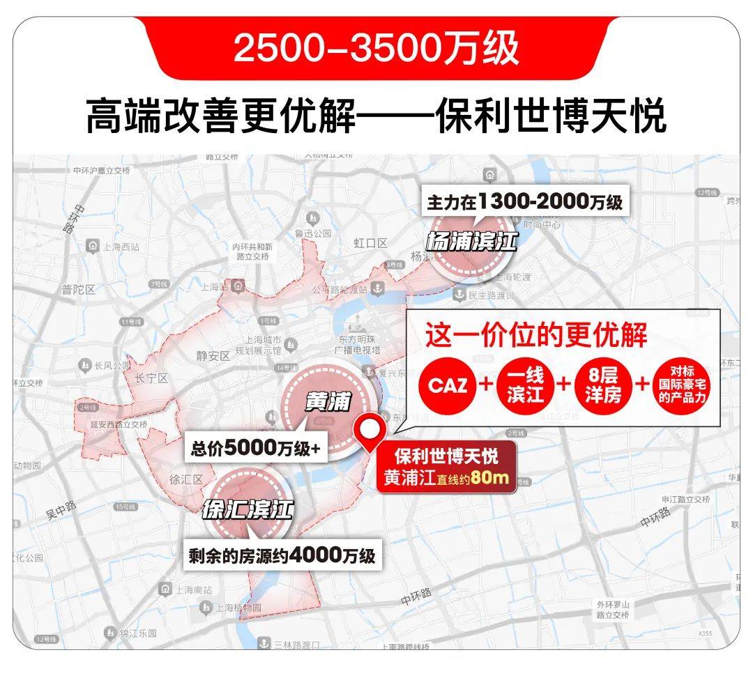 你要知道,徐滨剩余的房源约4000万级,黄浦5000万级+,杨浦滨江主力在1300-2000万,当下核心地段,2500万到3500万级能选的只有保利世博天悦。