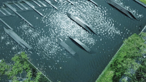 的确,水景是点睛之笔,赋予社区灵动和静谧之感,而形态各异的水景,在世博天悦,竟达到了约3000方。