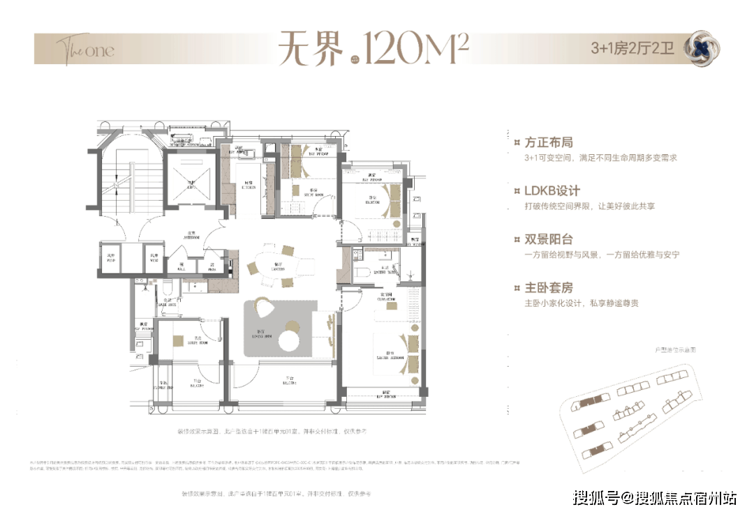 整体布局与140㎡户型基本一致,双南向阳台、独享电梯厅、6飘窗等户型拓展面积超过18㎡!