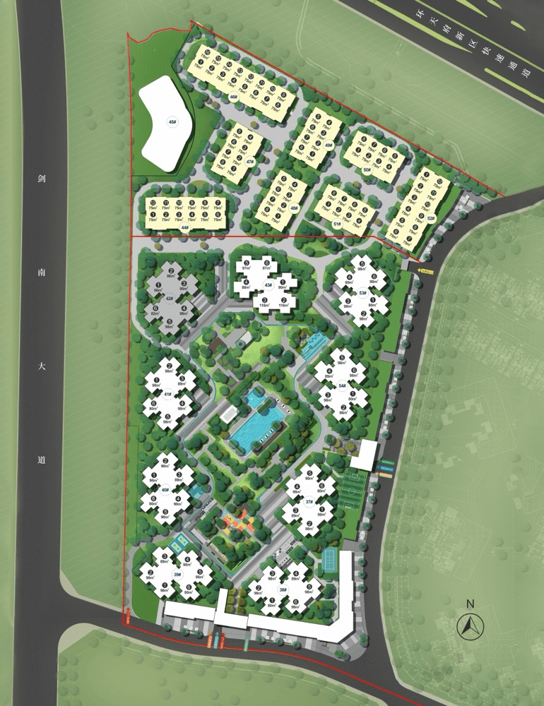 三期总占地面积830余亩,首批次推出江景组团分为东、西两侧地块约占地280亩,容积率仅2.2,产品以花园高层、阳光合院、江景叠拼别墅为主。