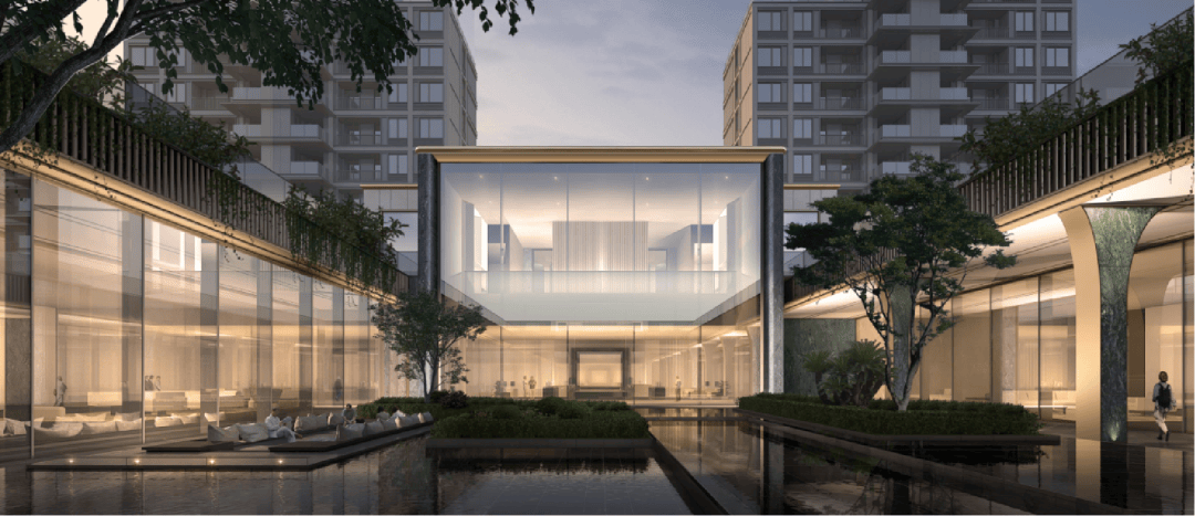 一重酒店式落客:数百万级投入,80米落客前场尽显气度;二重入口前厅:2.6 米主题雕塑与水景相映;三重下沉水院:通透玻璃幕墙围合精琢庭院;四重中央园林:四季有景,空间流畅;五重精装大堂:酒店式入户,超阔挑高,赋予归家尊崇感。