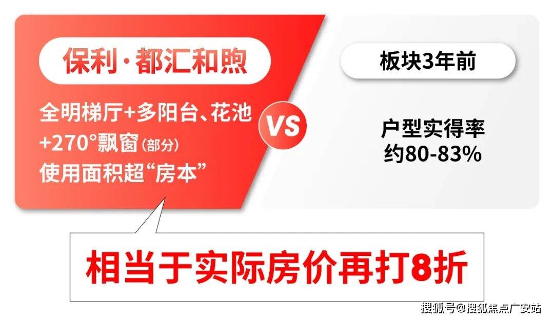 以前户型实得率约80%-83%,而项目带全明梯厅+多阳台、花池+270°转角飘窗(部分),可用面积远超“房本”,折算下来实际单价相当于以前项目再打8折!