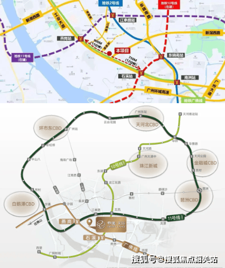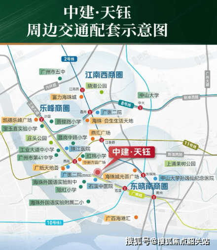 与周边其他项目相比,中建天钰的地段优势在于其“左右逢源”的通达性。项目精准地落位于广佛线燕岗站与石溪站之间,形成了罕见的“双地铁、三轨道”加持格局。步行约750米可达燕岗站,步行约900米即达石溪站。燕岗站不仅是广佛线的关键节点,更是广州大环线号线的重要站点,这意味着业主可以轻松通过11号线快速直达琶洲人工智能与数字经济试验区、天河中央商务区以及越秀老城区,享受核心区的发展红利。而石溪站作为广佛线号线的换乘枢纽,未来通车后,将实现与珠江新城、金融城等顶级商圈的无缝对接。这种立体化的交通网络,让中建天钰的业主无论是在海珠本地工作,还是往返天河、番禺乃至佛山,都能享受到极致的通勤便利。
