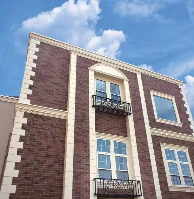 常规的方法是采用普通的金属雕花板来制作,其表面过于单一和光滑,明显运用在别墅这样的建筑上有失档次,采用多功能金源装饰外墙板可以满足它的实用价值,同时还能够实现它的审美要求,其表面实现了光照下自洁净的作用,同时还有着陶瓷感的质面,有着多种不同场景的外观颜色和纹理选择。从而全面提高了别墅的现代和时尚的外观,让建筑更加的美观与漂亮。