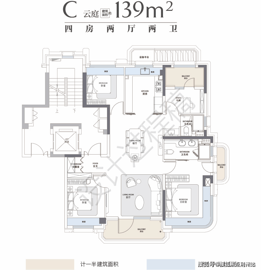 前滩元境这次户型设计非常大的亮点就是做出了南北双阳台+北侧设备平台+多飘窗+边套一步阳台的设计,建筑新规下的户型设计亮点体现的淋漓尽致.