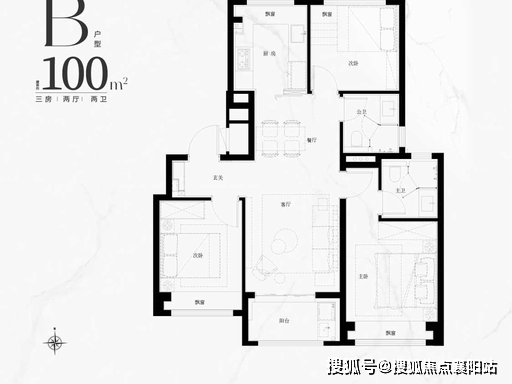 作为项目主力户型,100㎡三房兼顾功能性与舒适度,空间宽敞、采光充足、布局合理,无论是三口之家还是二孩家庭,都能满足日常居住、储物、社交需求,是改善家庭的首选户型。