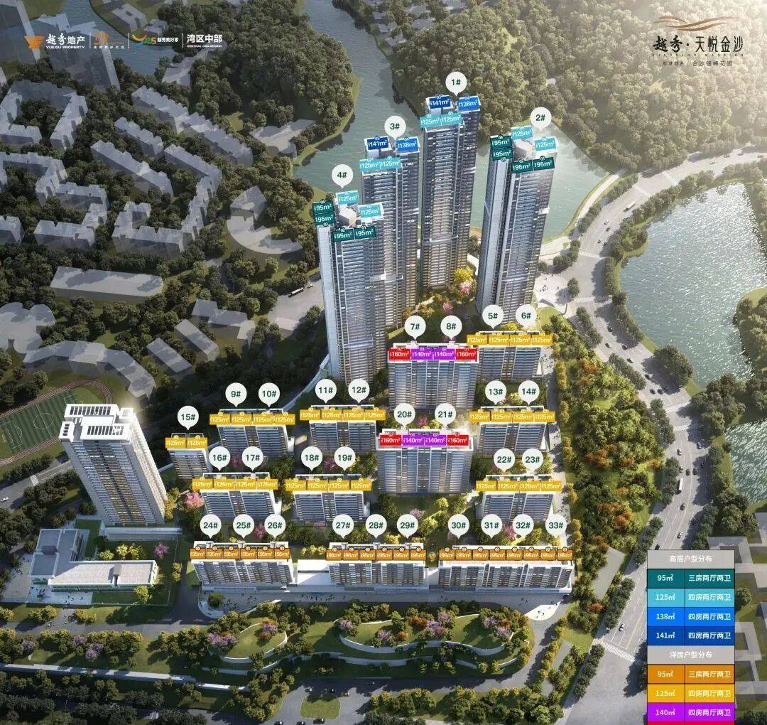 在售产品:小高层95㎡/125㎡三四房、超高层96㎡三房、125㎡/141㎡四房、底叠150-200㎡三四房。