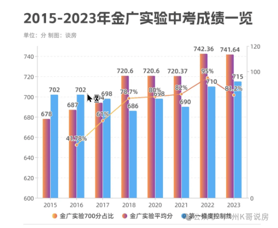 值得关注的是项目的金广附是本部搬迁过来,综合教育水平还是很有实力的,附带金广附历年中考成绩: