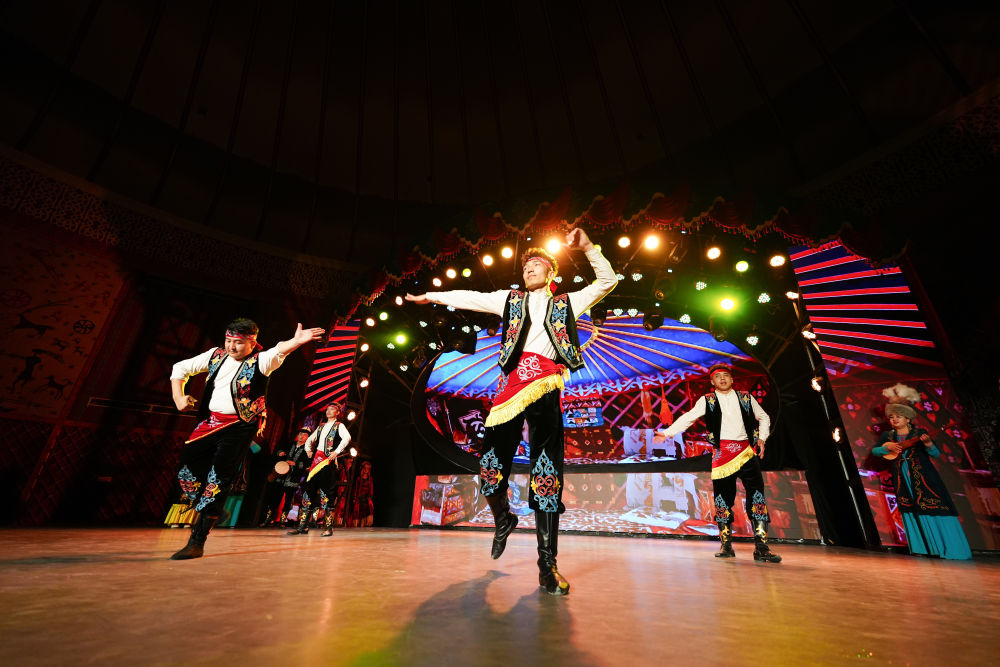 2025年5月1日,《新疆尔自治区玛纳斯非物质文化遗产保护条例》正式实施,为保护这部列入联合国教科文组织非遗名录的柯尔克孜族英雄史诗提供了法规遵循。这是2025年4月22日,演员在位于新疆阿图什市的玛纳斯史诗大剧院为游客表演。