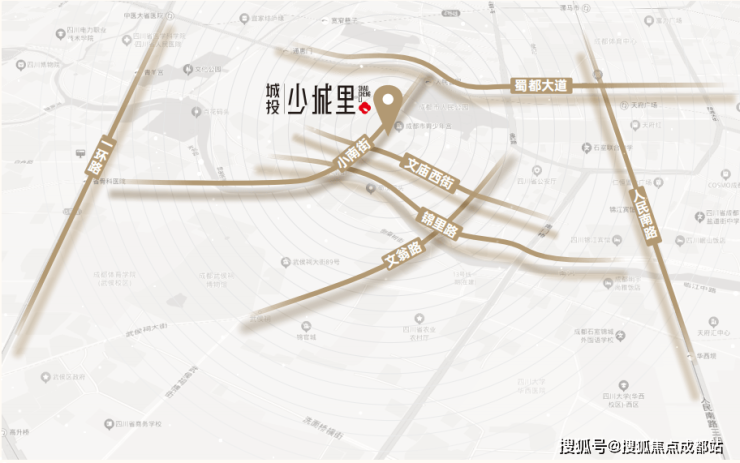 项目位于城市内环青羊区,为“中优”战略重点实施区域,新城、源城双擎发展;板块地处蜀汉博览乐活线及青羊区中优区域规划重要单元,北连皇城坝,祠堂街,南连、宽窄巷子等,聚集成都市区优质文游资源,教育资源,未来片区还将构建天府文化公园,打造文博创意集聚区和金融高端商务集聚区。