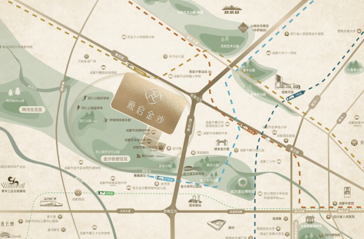 作为古蜀文明发源地,金沙板块承载成都3000年文脉。项目择址城西传统贵脉,与金沙遗址博物馆形成文化共鸣。