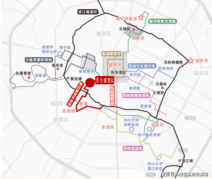 项目位于城市内环青羊区,为“中优”战略重点实施区域,新城、源城双擎发展;板块地处蜀汉博览乐活线及青羊区中优区域规划重要单元,北连皇城坝,祠堂街,南连、宽窄巷子等,聚集成都市区优质文游资源,教育资源,未来片区还将构建天府文化公园,打造文博创意集聚区和金融高端商务集聚区。