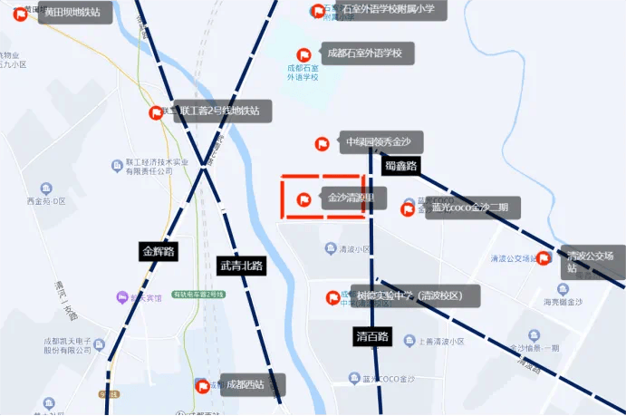 金沙清源里位于成都市青羊区外金沙板块清源社区武青北路与金辉路交界处,紧邻清水河畔,属于青羊区的核心地段。青羊区作为成都的老五区之一,不仅是西部地区和四川省党政军机关的集中地,还承载着丰富的历史文化底蕴。项目周边交通便捷,一环一纵一横的三轴立体路网,包括西三环、武青北路、金辉路等城市主干道,让居民可以迅速通达全城。此外,地铁2号线号线号线也为居民提供了便捷的轨道交通选择。