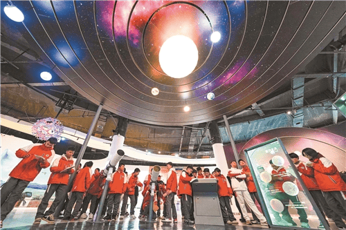 学生在“星耀中国 科创未来”毕节站系列展览中参观天体运行模型(高琦 摄)