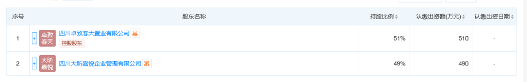 由于地块所在区位成熟,面积袖珍,且仁和春天本身已经具备独立开发的经验和能力,业内并未设想该地块会引入合作开发。而近日地块项目公司股权穿透结果显示:该公司实际由四川卓致春天置业有限公司和四川大昕嘉悦企业管理有限公司共同持有,分别持股51%、49%。
