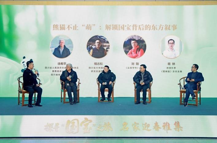 四川还生存着“国宝”大熊猫,它是中国“国宝”,也是世界“团宠”。截至目前,大熊猫国家公园四川片区栖息着1227只野生大熊猫,约占园内种群91.6%。四川省大熊猫科学研究院副院长杨志松,熊猫作家、《看熊猫》杂志主编蒋林等在沙龙环节讲述了这一“活化石”的故事。两位嘉宾表示,从大熊猫的生存演进、生活栖息、生命习性,可以读懂这一物种跨越千万年的生存智慧,更能窥见人与自然和谐共生的生态密码。大熊猫栖息地域的“宽”与“窄”,大熊猫保护的“窄”与“宽”,也是东方哲学智慧的生动体现。这是人们喜爱大熊猫更深层次的原因。