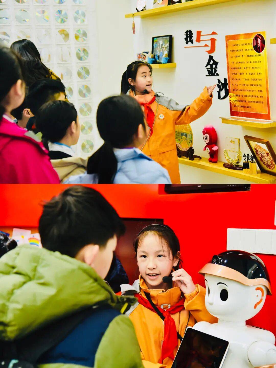 金沙小学师生代表在校门口热情迎接远道而来的香港朋友,随后双方共同参观校史馆,定格下两地师生初次见面的美好瞬间。