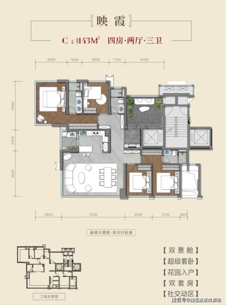 183㎡四房三厅三卫(楼王户型):LDK-R一体化方厅,270°景观阳台