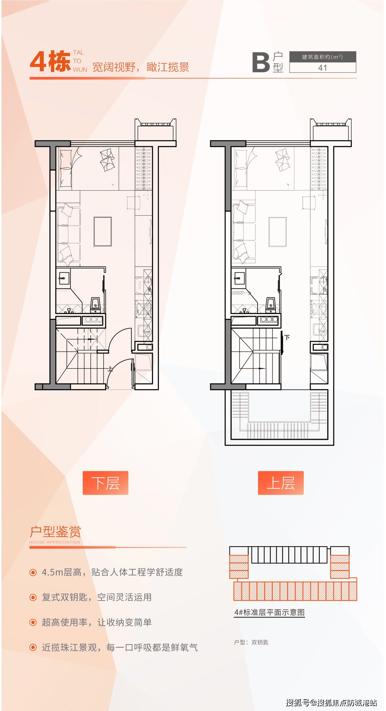 A3:项目主力户型为30-42㎡双钥匙复式,户型灵动多变,上下空间互不干扰。总价约75万起,根据户型、楼层、朝向不同,价格有所差异。根据项目官方数据和板块租赁市场行情,投资回报率超6.5%,可实现以租抵贷,租金收益稳定。