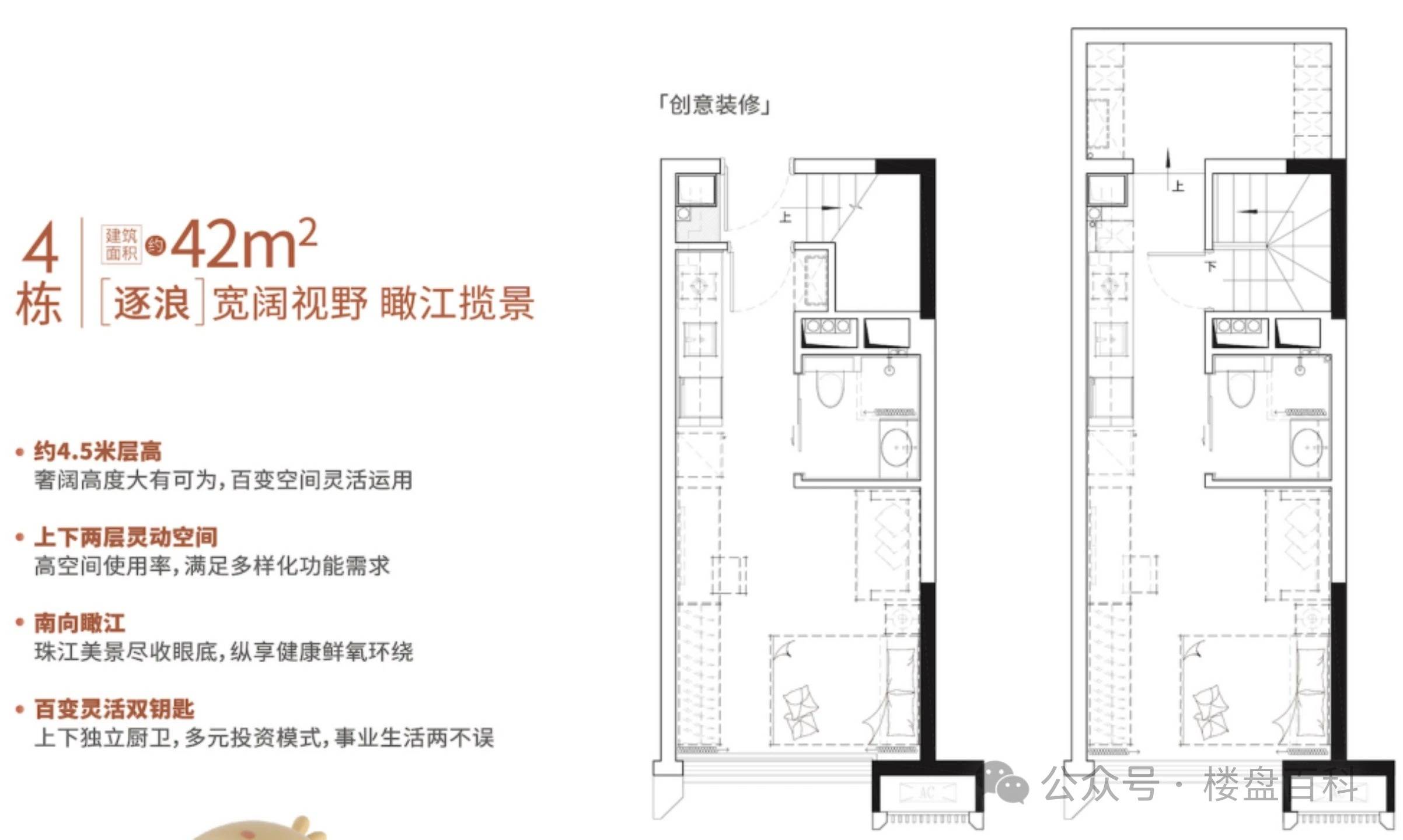 ,我们看到了华为研发中心带来的产业红利,看到了白云湖数字科技城的产业链延伸,看到了金沙洲板块价值的全面爆发。我们打造的不仅是房子,更是共享区域红利的入场券。在产品设计上,我们摒弃了传统公寓的压抑感,采用4.5米层高,打造复式中空结构,让空间有了呼吸感。我们精心规划了双钥匙户型,既适合自住享受大空间,又适合投资分割出租,实现租金收益最大化。我们注重每一寸空间的利用,30方、42方、60方、84方多种面积段覆盖刚需、改善及投资客群,让不同预算的家庭都能找到心仪的家。