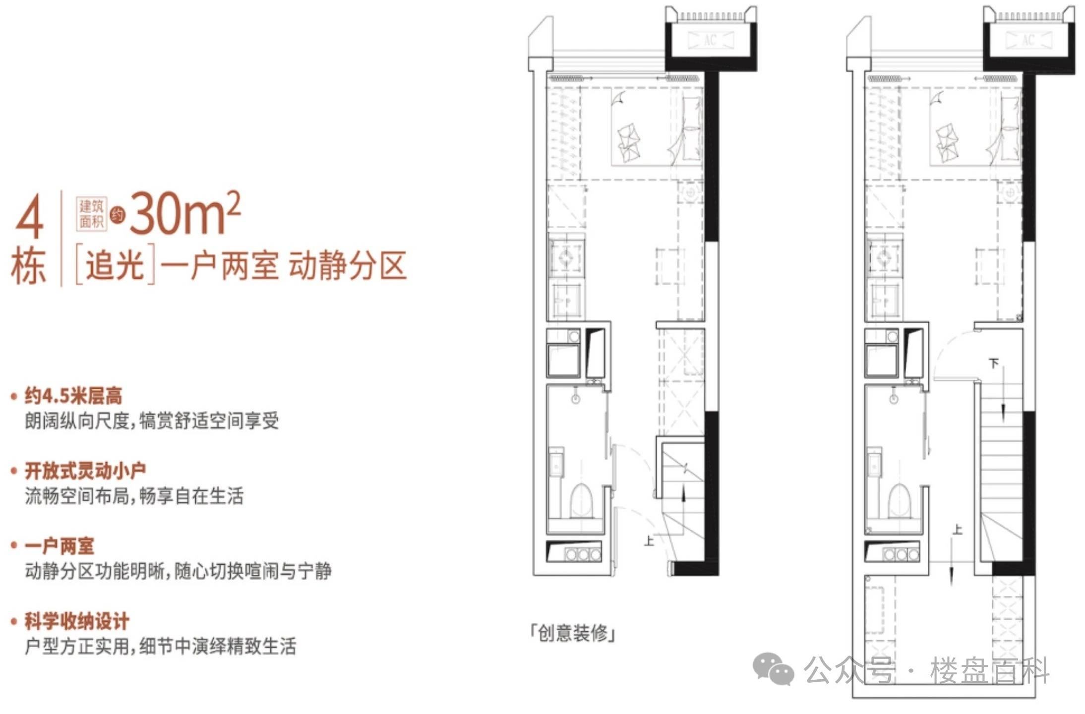 :本项目主打4.5米层高的复式公寓。虽然名义上是40年产权公寓,但其双层结构极大地拓展了使用空间。例如,一套30平方米的复式单位,实际使用面积可达50-60平方米以上,相当于普通平层的一居室甚至两居室。