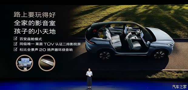 车辆二排提供多功能桌板,承托稳固且配备专属笔槽,搭配南德TUV护眼智慧顶灯。多功能椅背拓展接口可灵活为设备供电。车内配备银离子保鲜冷暖箱,支持2–50℃宽域调温。车辆还配备15.6英寸二排影院屏,全车搭载7.1.4杜比全景声20扬声器环绕音响。此外,新车还提供多色智能交互氛围灯,前风挡与四门均标配5mm双层夹胶静音玻璃,搭配后排隐私玻璃。此外,车辆后备厢容积为650L-1798L。