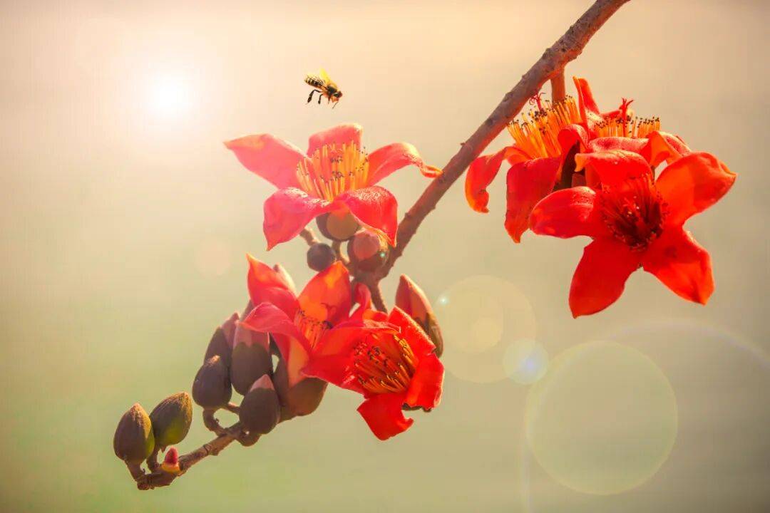 天气渐暖,在四川省攀枝花市,攀枝花风风火火地开了。碧绿的金沙江畔,硕大的花朵在数十米高的树上含馨吐蕊,洋溢着蓬勃的生命力。
