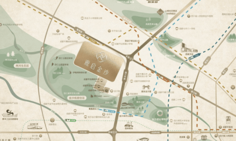 作为古蜀文明发源地,金沙板块承载成都3000年文脉。项目择址城西传统贵脉,与金沙遗址博物馆形成文化共鸣。