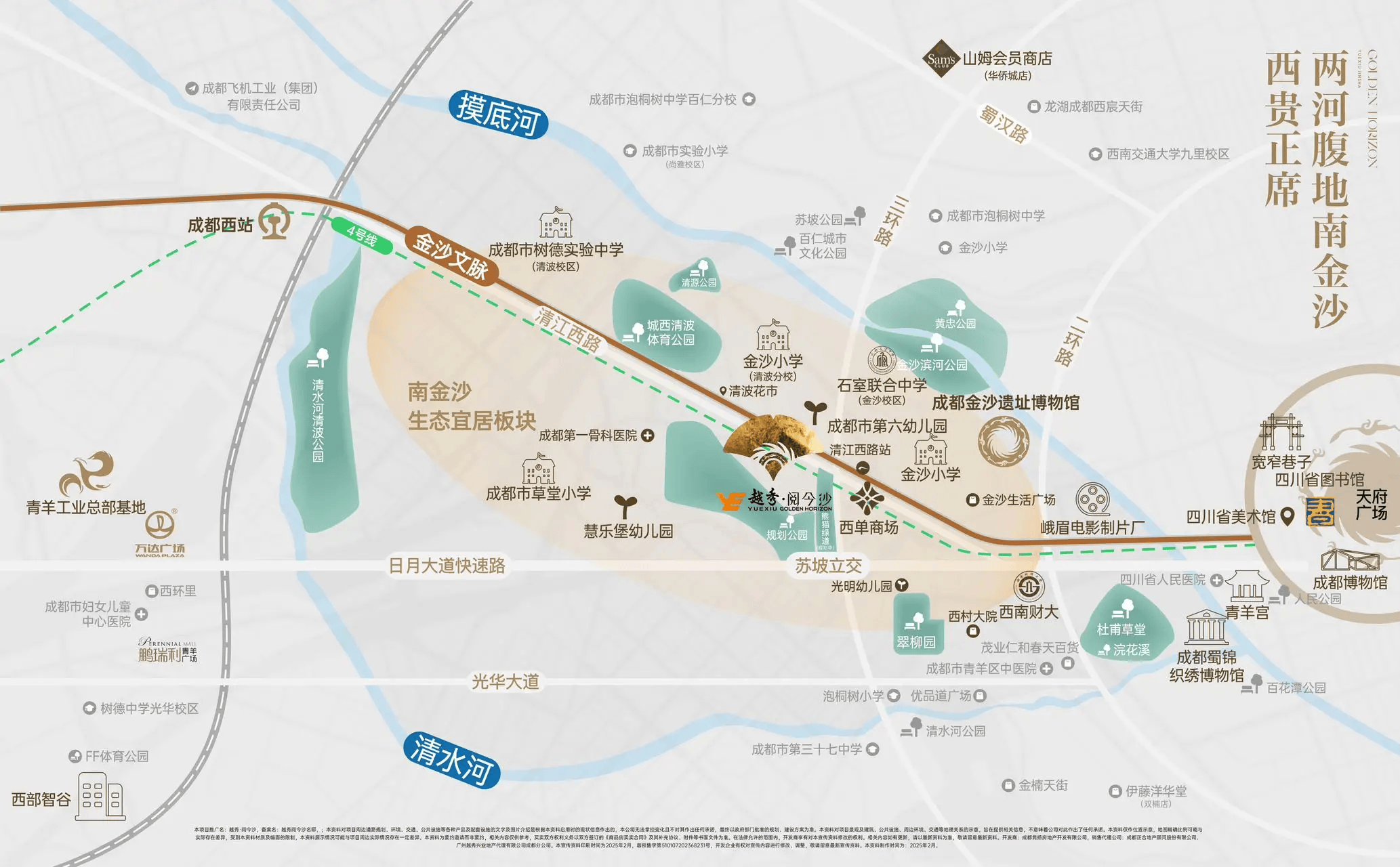 1. 项目立足青羊内金沙高端居住区,作为城西传统“西贵”核心板块,土地资源稀缺且开发饱和,周边高端改善社区扎堆,无老旧杂乱建筑,城市界面整洁规整,人文居住氛围浓厚,地段保值性与居住纯粹度远超普通板块。